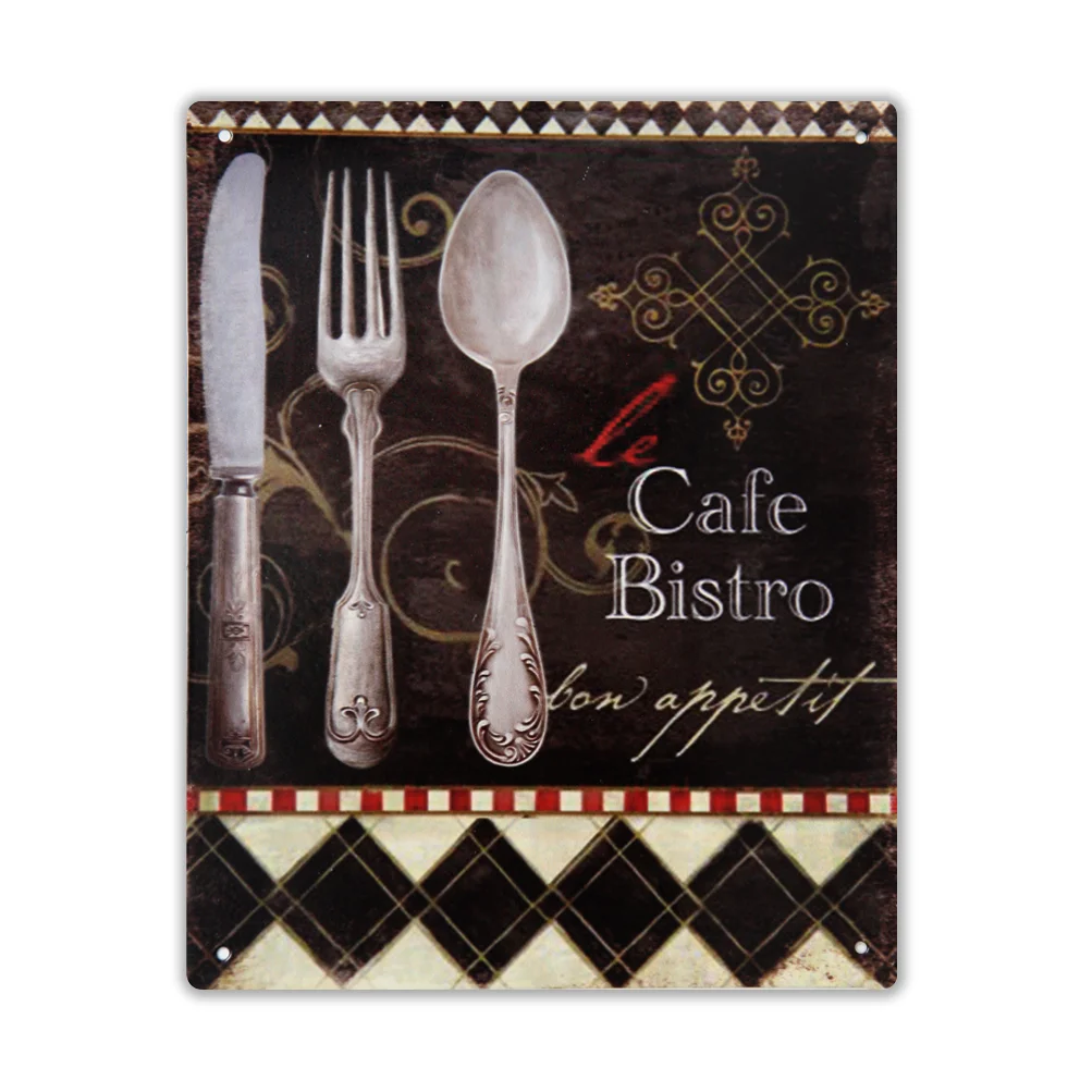 Wandbord ‘Cafe Bistro – Bon appetit (met bestek)’