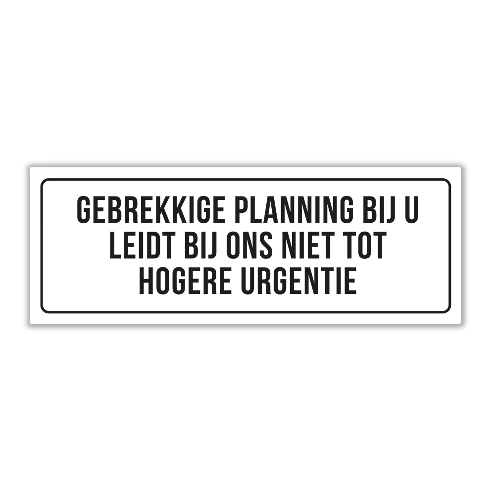 Wandbord ‘Gebrekkige planning bij u leidt bij ons niet tot hogere urgentie’