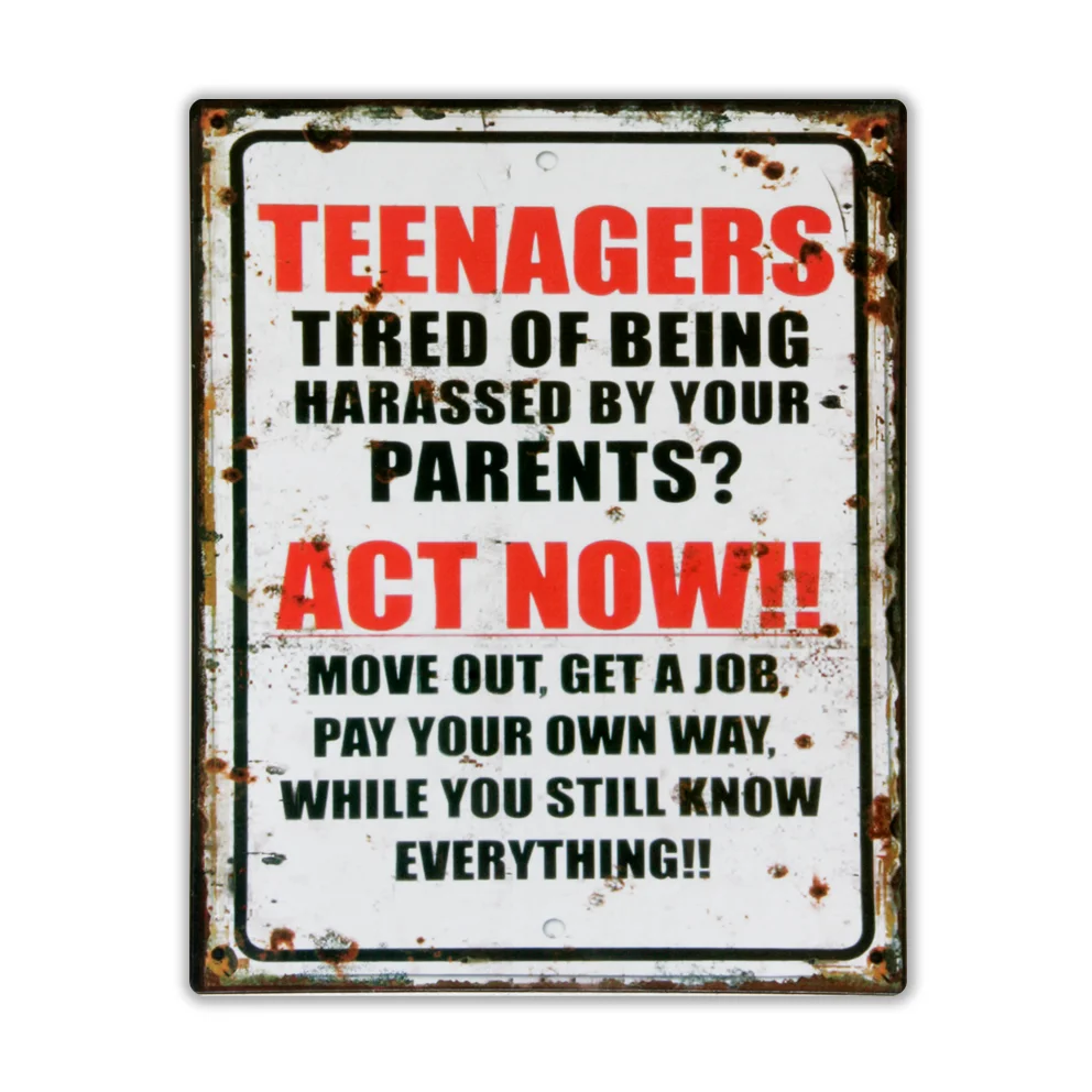 Wandbord ‘Teenagers – tired of being harassed by your parents?’